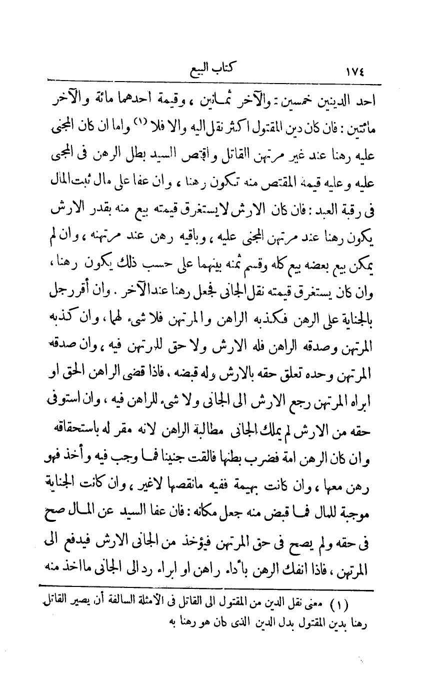 1 معنى نقل الدين من المقتول إلى القاتل في الأمثلة السالفة أن يصير القاتل رهنا بدين المقتول بدل الدين الذي كان هو رهنا به.