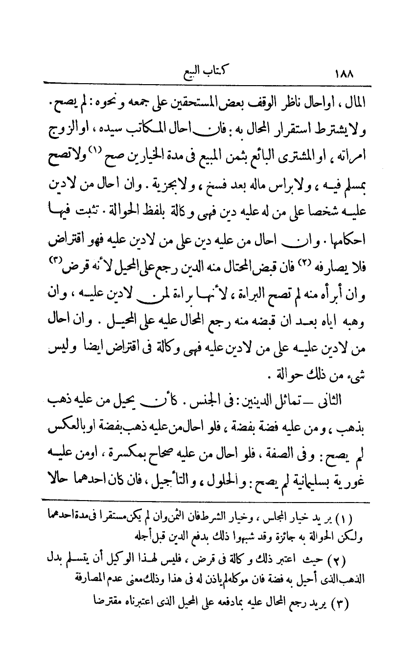 1 يريد خيار المجلس، وخيار الشرط فإن الثمن وإن لم يكن مستقرا في مدة أحدهما ولكن الحوالة به جائزة وقد شبهوا ذلك بدفع الدين قبل أجله.