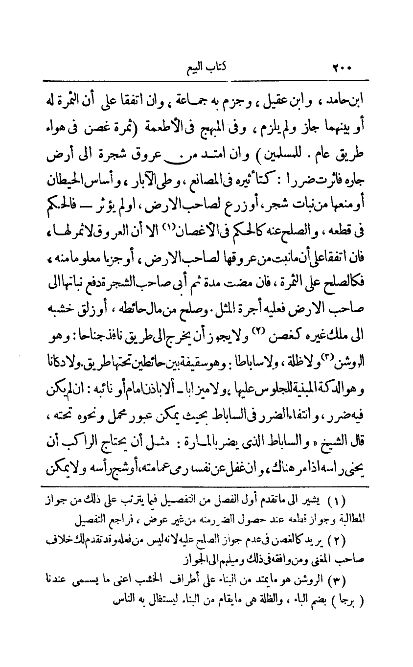 3 الروشن: هو ما يمتد من البناء على أطراف الخشب أعني ما يسمى عندنا برجا بضم الباء، والظلة: هي ما يقام من البناء ليستظل به الناس.