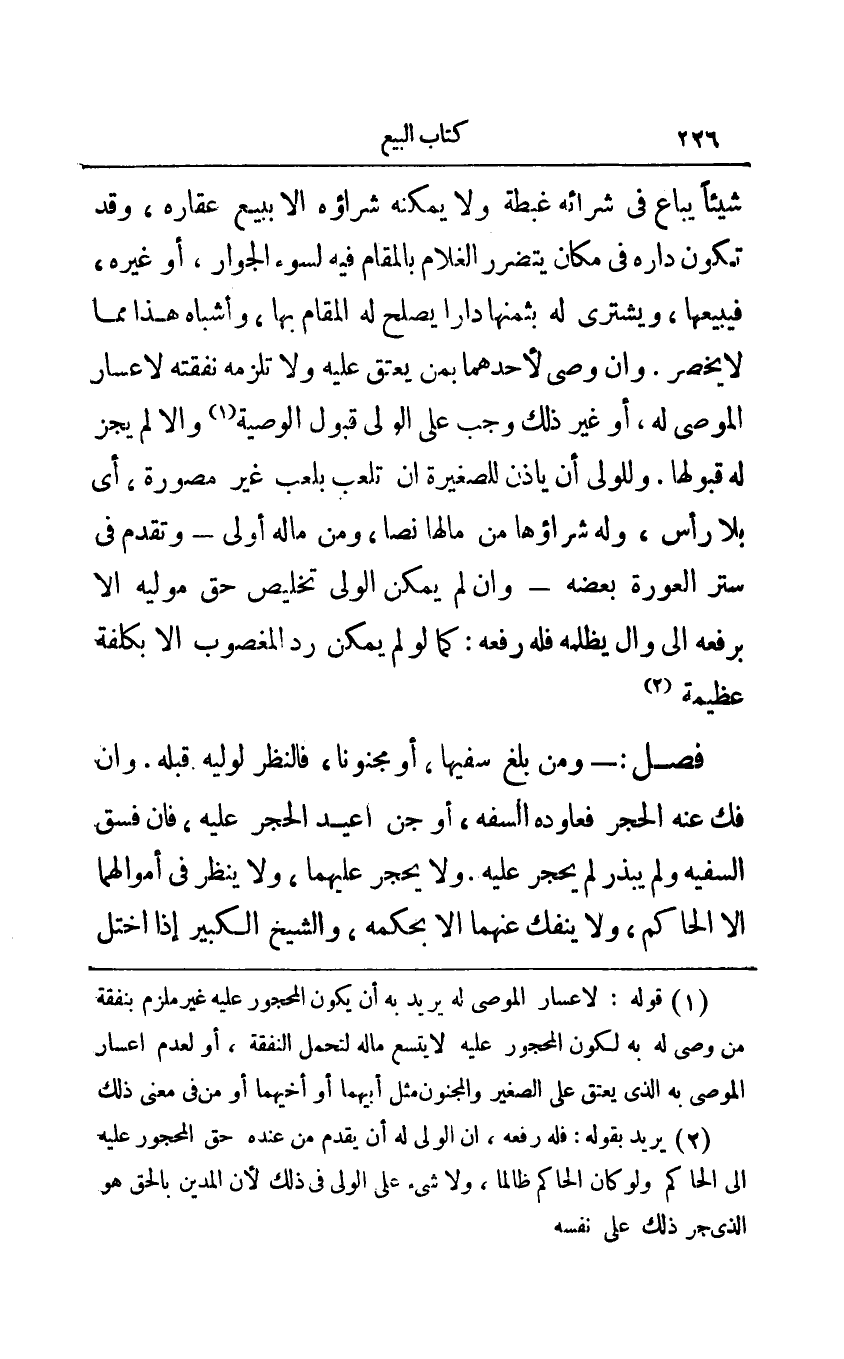 1 قوله: لإعسار الموصي له يريد به أن يكون المحجور عليه غير ملزم بنفقة من وصى له به لكون المحجور عليه لا يتسع ماله لتحمل النفقة، أو لعدم إعسار الموصي به الذي يعتق على الصغير والمجنون مثل أبيهما أو أخيهما أو من في معنى ذلك.