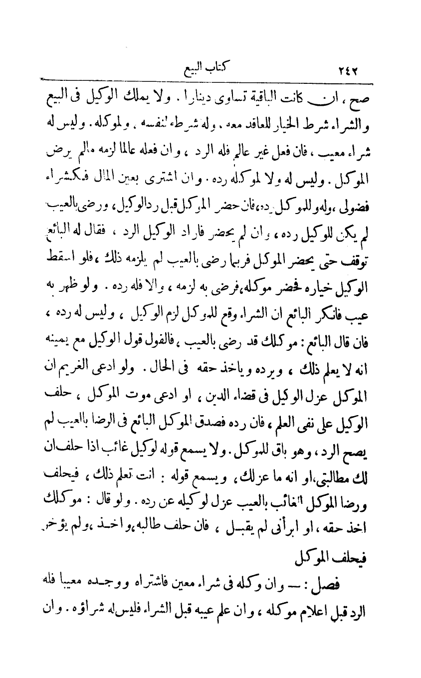 صح إن كانت الباقية تساوي دينارا ولا يملك الوكيل في البيع والشراء شرط الخيار للعاقد معه وله شرطه لنفسه ولموكله وليس له شراء معيب فإن فعل غير عالم فله الرد وإن فعله عالما لزمه ما لم يرض الموكل وليس له ولا لموكله رده وإن اشترى بعين المال فكشراء فضولي وله وللموكل رده فإن حضر الموكل رد الوكيل ورضي بالعيب لم يكن للوكيل رده وإن لم يحضر فأراد الوكيل الرد فقال له البائع توقف حتى يحضر الموكل فربما رضي بالعيب لم يلزمه ذلك فلو اسقط الوكيل خياره فحضر موكله فرضي به لزمه وإلا فله رده ولو ظهر به عيب فأنكر البائع أن الشراء وقع للموكل لزم الوكيل وليس له رده فإن قال البائع: موكلك قد رضي بالعيب فالقول قول الوكيل مع يمينه أنه لا يعلم ذلك ويرده ويأخذ حقه في الحال ولو ادعى الغريم أن الموكل عزل الوكيل في قضاء الدين أو ادعى موت الموكل حلف الوكيل على نفي العلم فإن رده فصدق الموكل البائع في الرضا بالعيب لم يصح الرد وهو باق للموكل ولا يسمع قوله لوكيل غائب إذا حلف أن لك مطالبتي أو أنه ما عزلك ويسمع قوله: أنت تعلم ذلك فيحلف ورضا الموكل الغائب بالعيب عزل لوكيله عن رده ولو قال: موكلك أخذ حقه أو ابرأني لم يقبل فإن حلف طالبه وأخذ ولم يؤخر فيحلف الموكل.
