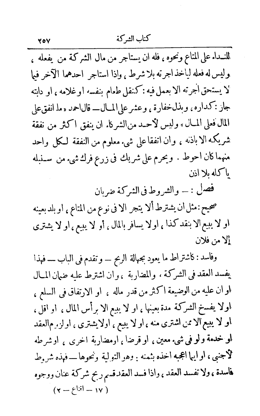 فصل:- والشروط في الشركة ضربان: