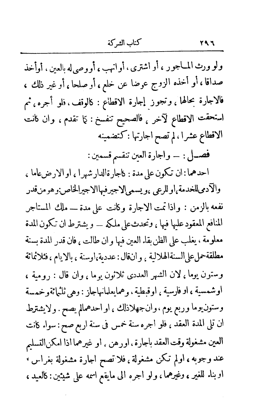 فصل: وإجارة العين تنقسم قسمين: