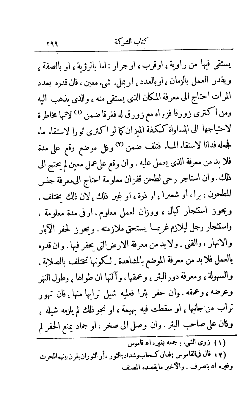 يستقي فيها من راوية أو قرب أو جرار: إما بالرؤية أو بالصفة ويقدر العمل بالزمان أو بالعدد أو بملء شيء معين فإن قدره بعدد المرات احتاج إلى معرفة المكان التي يستقي منه والذي يذهب إليه ومن اكترى زورقا فزواه مع زورق له فغرقا ضمن1 لأنها مخاطرة لاحتياجها إلى المساواة ككفة الميزان كما لو اكترى ثورا لاستقاء ماء فجعله فدانا لاستقاء الماء فتلف ضمن2 وكل موضع وقع على مدة فلا بد من معرفة الذي يعمل عليه وإن وقع على عمل معين لم يحتج إلى ذلك وإن استأجر رحى لطحن قفزان معلومة احتاج إلى معرفة جنس المطحون: برا أو شعيرا أو ذرة أو غير ذلك لأن ذلك يختلف ويجوز استئجار كيال ووزان لعمل معلوم أو في مدة معلومة واستئجار رجل ليلازم غريما يستحق ملازمته ويجوز لحفر الآبار والأنهار والقنى ولا بد من معرفة الأرض التي يحفر فيها وإن قدره بالعمل فلا بد من معرفة الموضع بالمشاهدة لكونها تختلف بالصلابة والسهولة ومعرفة دور البئر وعمقها وآلتها أن طواها وطول النهر وعرضه وعمقه وإن حفر بئرا فعليه شيل ترابها منها فإن تهور تراب من جانبها أو سقطت فيه بهيمة أو نحو ذلك لم يلزمه شيله وكان على صاحب البئر وإن وصل إلى صخر أو جماد يمنع الحفر لم