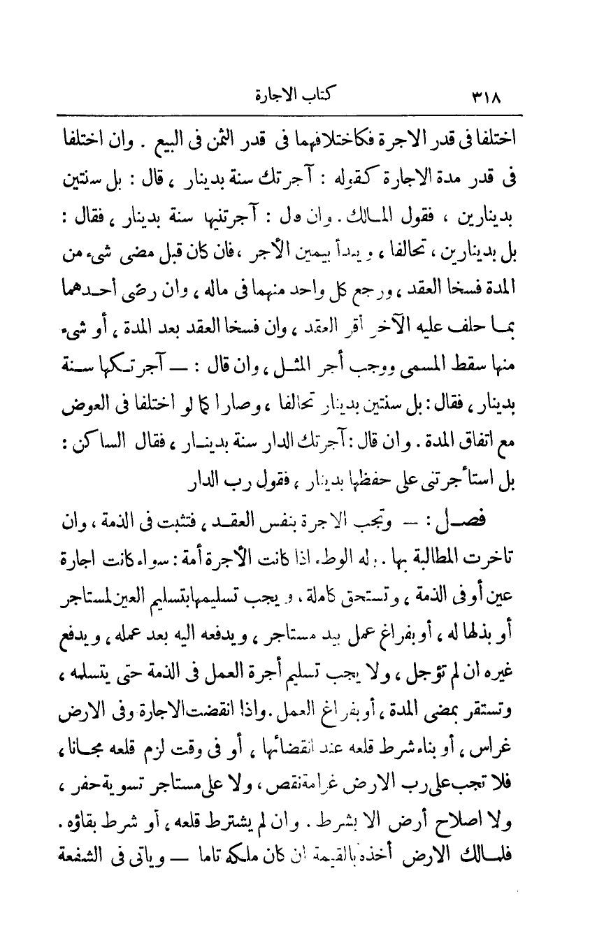 فتثبت في الذمة وإن تأخرت المطالبة بها وله الوطء إذا كانت الأجرة أمة: سواء كانت إجارة عين أو في الذمة وتستحق كاملة ويجب تسليمها بتسليم العين لمستأجر أو بذلها له أو بفراغ عمل بيد مستأجر ويدفعه إليه بعد عمله ويدفع غيره إن لم تؤجل ولا يجب تسليم أجرة العمل في الذمة حتى يتسلمه وتستقر بمضي المدة أو بفراغ العمل وإذا انقضت الإجارة وفي الأرض غراس أو بناء شرط قلعه عند انقضائها أو في وقت لزم قلعه مجانا فلا تجب على رب الأرض غرامة نقص ولا على مستأجر تسوية حفر ولا إصلاح أرض إلا بشرط وإن لم يشترط قلعه أو شرط بقاؤه فلمالك الأرض أخذه بالقيمة إن كان ملكه تاما - ويأتي في الشفعة