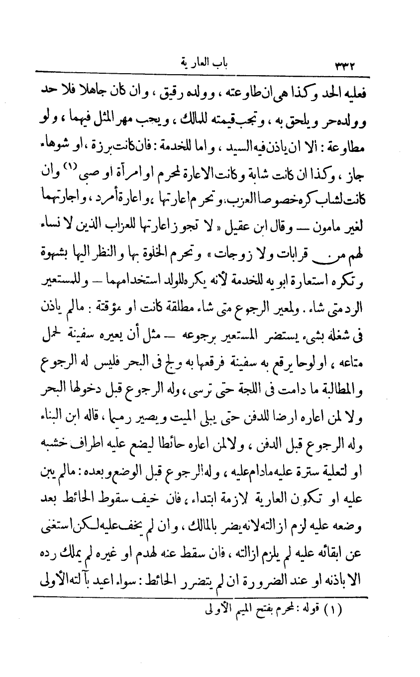 فعليه الحد وكذا هي أن طاوعته وولده رقيق وإن كان جاهلا فلا حد وولده حر ويلحق به وتجب قيمته للمالك ويجب مهر المثل فيهما ولو مطاوعة: إلا أن يأذن فيه السيد وأما للخدمة: فإن كانت برزة أو شوها جاز وكذا إن كانت شابة وكانت الإعارة لمحرم أو امرأة أو صبي1 وإن كانت لشاب كره خصوصا العزب وتحرم إعارتها وإعارة أمرد وأجارتهما لغير مأمون - وقال ابن عقيل: لا تجوز إعارتها للعزاب الذي لا نساء لهم من قرابات ولا زوجات وتحرم الخلوة بها والنظر إليها بشهوة وتكره استعارة أبويه للخدمة لأنه يكره للولد استخدامهما - وللمستعير الرد متى شاء ولمعير الرجوع متى شاء مطلقة كانت أو مؤقتة ما لم يأذن في شغله بشيء يستضر المستعير برجوعه - مثل أن يعيره سفينة لحمل متاعه أو لوحا يرقع به سفينة فرقعها به ولج في البحر فليس له الرجوع والمطالبة ما دامت في اللجة حتى ترسي وله الرجوع قبل دخولها البحر ولا لمن أعاره أرضا للدفن حتى يبلى الميت ويصير رميما قاله ابن البناء وله الرجوع قبل الدفن ولا لمن أعاره حائطا ليضع عليه أطراف خشبه أو لتعلية سترة عليه ما دام عليه وله الرجوع قبل الوضع وبعده: ما لم يبن عليه أو تكون العارية لازمة ابتداء فإن خيف سقط الحائط بعد وضعه عليه لزم إزالته لأنه يضر بالمالك وإن لم يخف عليه لكن استغنى عن إبقائه عليه لم يلزم إزالته فإن سقط عنه لهدم أو غيره لم يملك رده إلا بأذنه أو عند الضرورة إن لم يتضرر الحائط: سواء أعيد بآلته الأولى