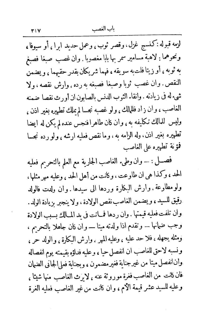 فصل:- وإن وطئ الغاصب الجارية مع العلم بالتحريم