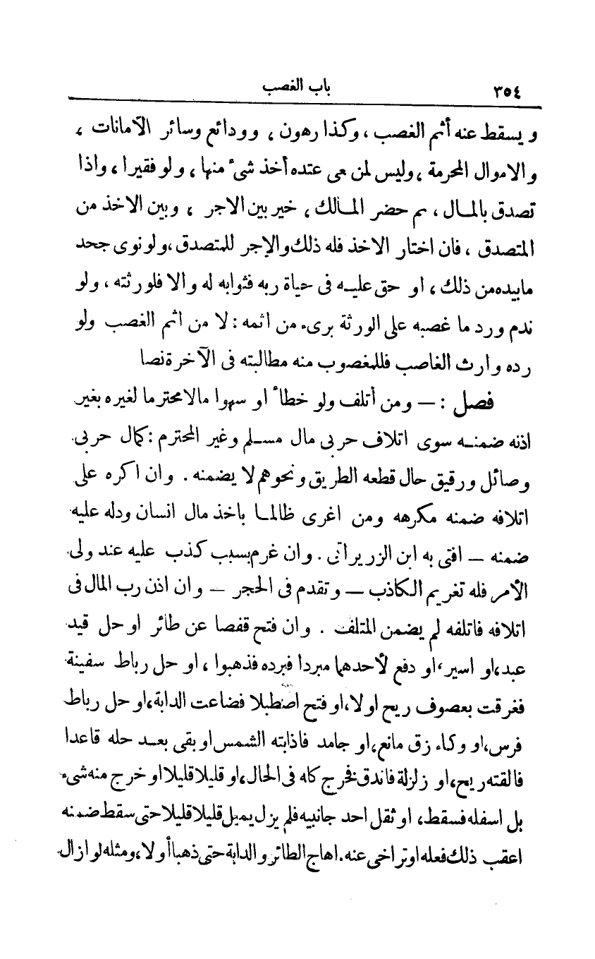 فصل:- ومن أتلف ولو خطأ أو سهوا مالا محترما لغيره بغير إذنه