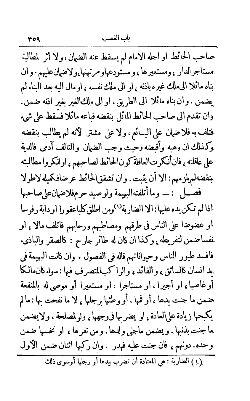 ولو صيد حرم فلا ضمان على صاحبها إذا لم تكن يده عليها: إلا الضاربة1 ومن أطلق كلبا عقورا أو دابة رفوسا أو عضوضا على الناس في طرقهم ومصاطبهم ورحابهم فأتلف مالا أو نفسا ضمن لتفريطه وكذا إن كان له طائر جارح: كالصقر والباذئ فأفسد طيور الناس وحيواناتهم قاله في الفصول وإن كانت البهيمة في يد إنسان كالسائق والقائد والراكب المتصرف فيها: سواء كان مالكا أو غاصبا أو أجيرا أو مستأجرا أو مستعيرا أو موصي له بالمنفعة ضمن ما جنت يدها أو فمها أو وطئها برجلها لا ما نفحت بها: ما لم يكبحها زيادة على العادة أو يضر بها في وجهها ولو لمصلحة ولا يضمن ما جنت بذنبها ويضمن ما جنى ولدها ومن نفرها أو نخسها ضمن وحده دونهم فإن جنت عليه فهدر وإن ركبها اثنان ضمن الأول