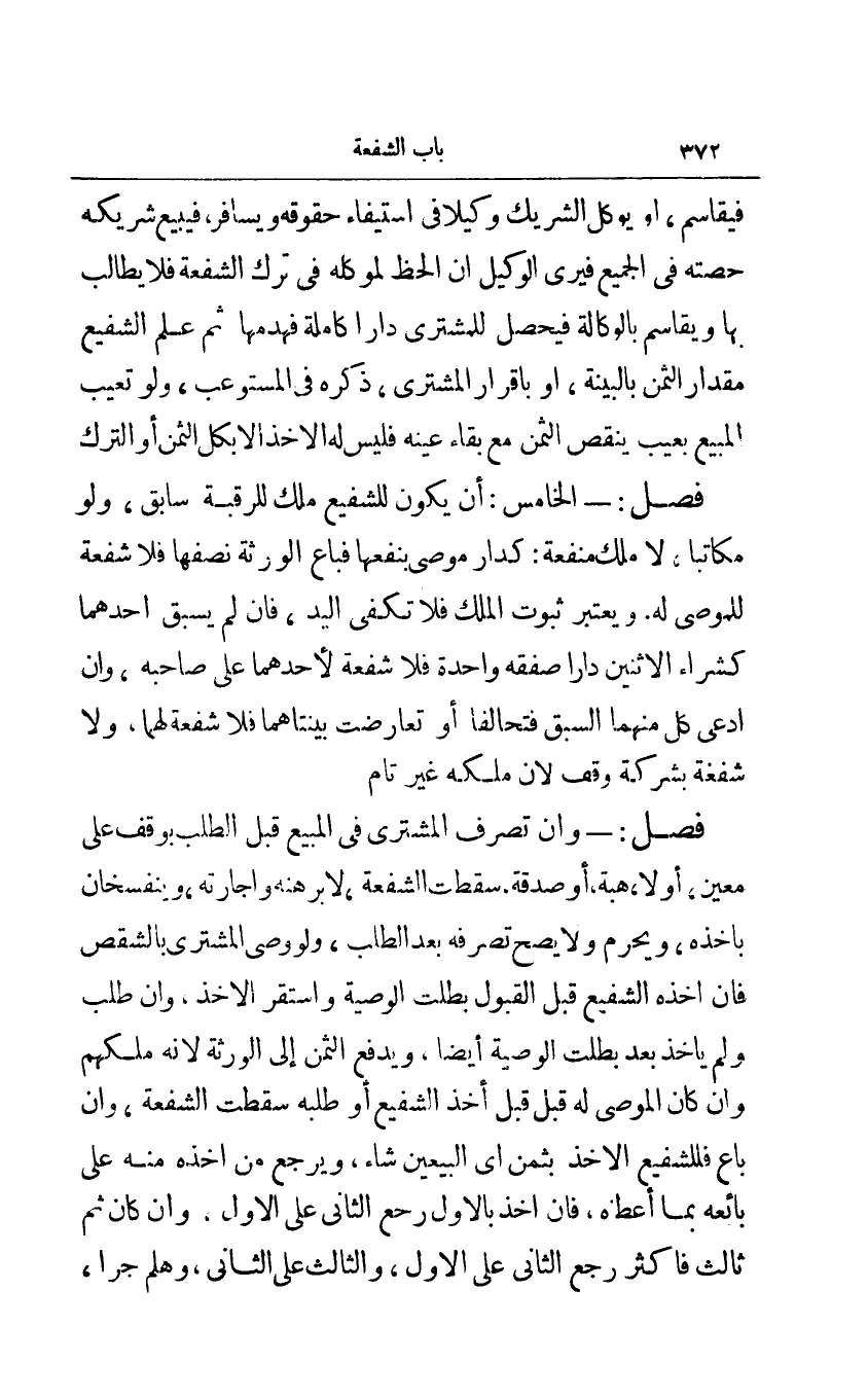 فصل:- الخامس: أن يكون للشفيع ملك للرقبة سابق