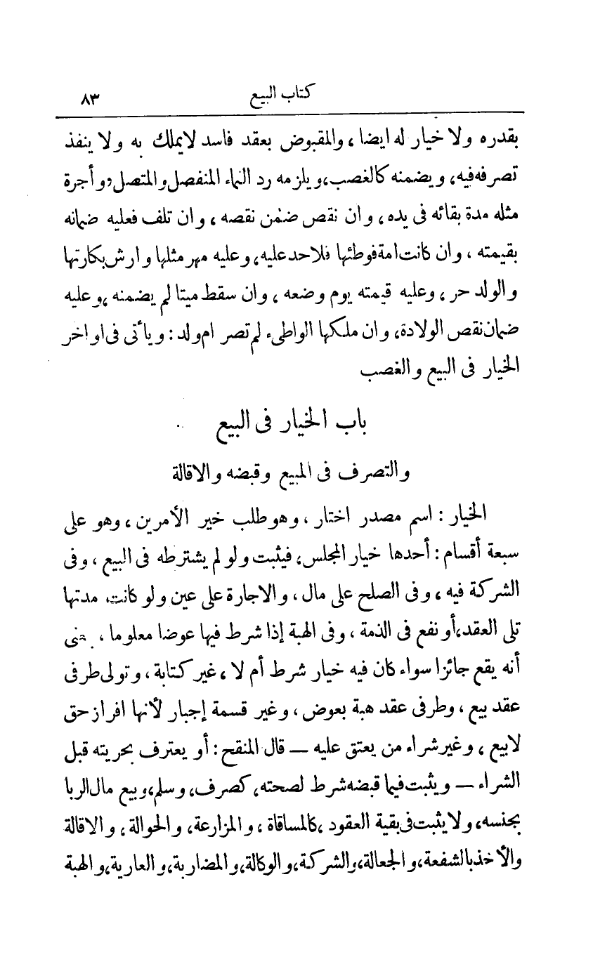 باب الخيار في البيع والتصرف في المبيع وقبضه والإقالة