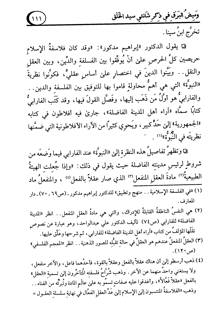 (¬1) "في الفلسفة الإسلامية .. منهج وتطبيق" للدكتور إبراهيم مدكور - (ص 69 - 70) - دار المعارف.
