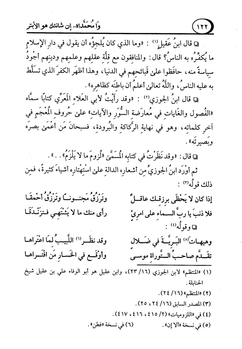 (¬1) "المنتظم" لابن الجوزي (16/ 23)، وابن عقيل هو أبو الوفاء علي بن عقيل شيخ الحنابلة.