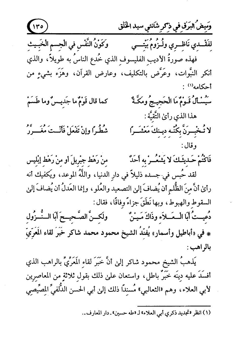 * في "أباطيل وأسمار" يفنِّد الشيخ محمود محمد شاكر خَبَرَ لقاء المَعَرِّيِّ بالراهب: