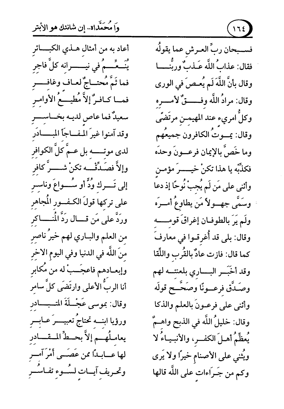 فسبحان ربِّ العرشِ عما يقولُه ... أعاد به من أمثالِ هذي الكبائرِ