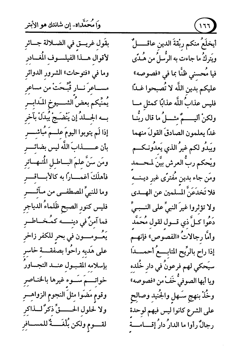 ويا أيها الصوفْي خَفْ من "فصوصه" ... خواتِمَ سَوء غيرها بالخناصِرِ