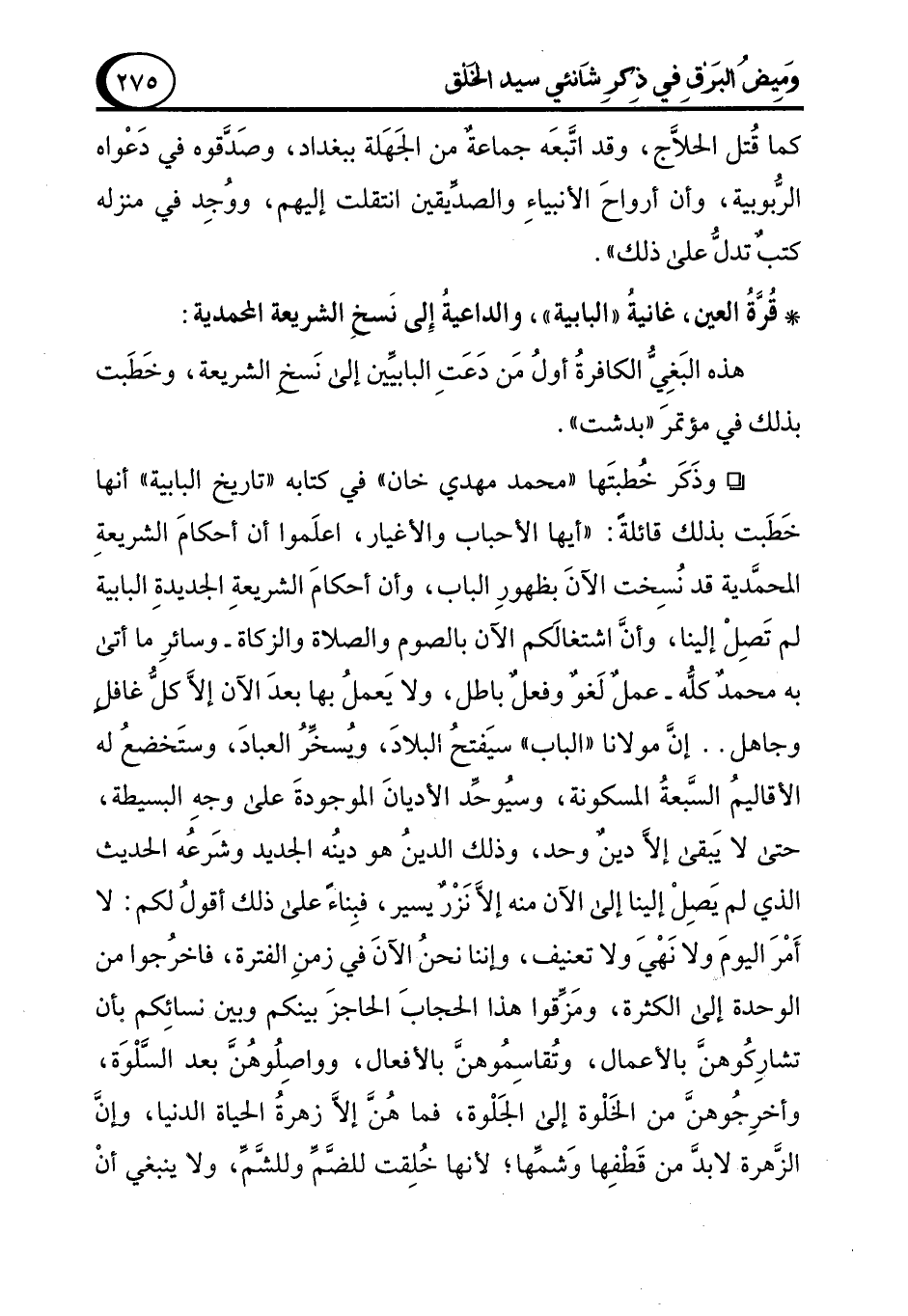 * قُرَّة العين، غانيةُ "البابية"، والداعية إِلى نَسخِ الشريعة المحمدية: