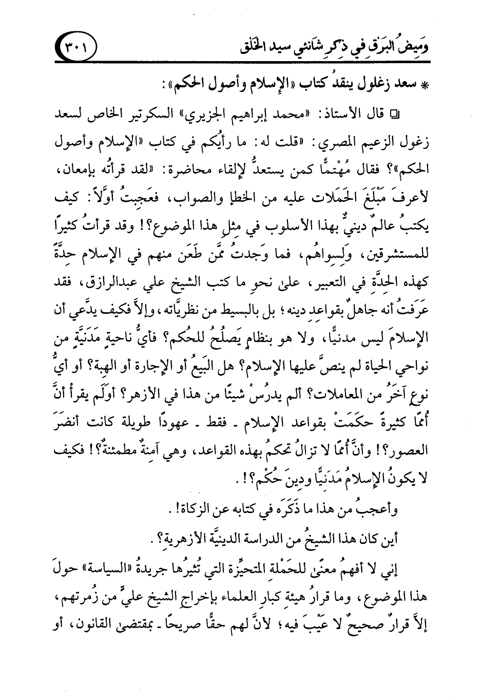 * سعد زغلول ينقدُ كتاب "الإِسلام وأصول الحكم":