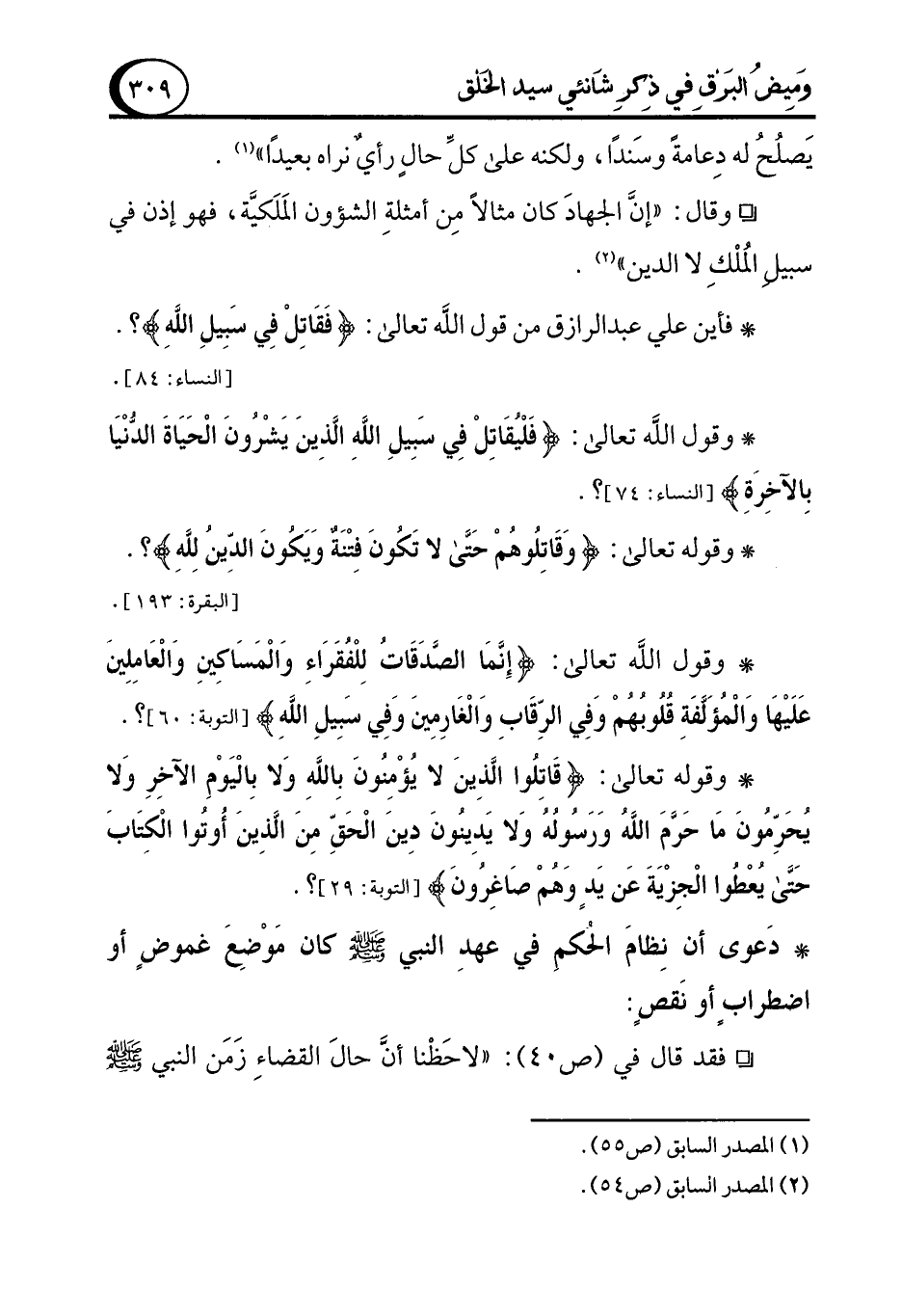 * فأين علي عبد الرازق من قول الله تعالى: {فَقَاتِلْ فِي سَبِيلِ اللَّهِ}؟ [النساء: 84].