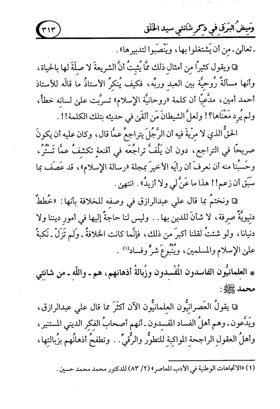 (¬1) "الاتجاهات الوطنية في الأدب المعاصر" (2/ 83) للدكتور محمد محمد حسين.