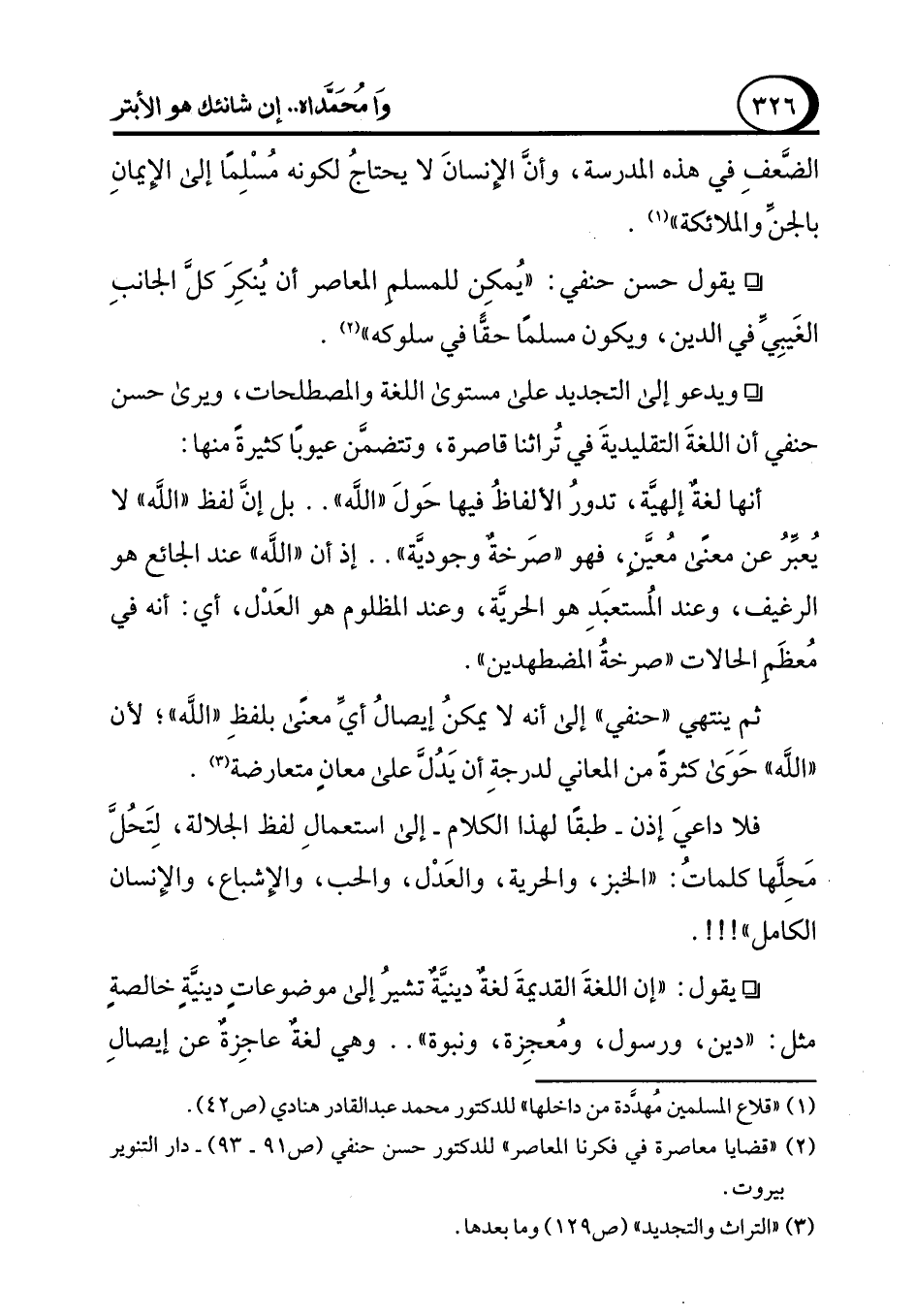 (¬2) "قضايا معاصرة في فكرنا المعاصر" للدكتور حسن حنفي (ص 91 - 93) - دار التنوير بيروت.