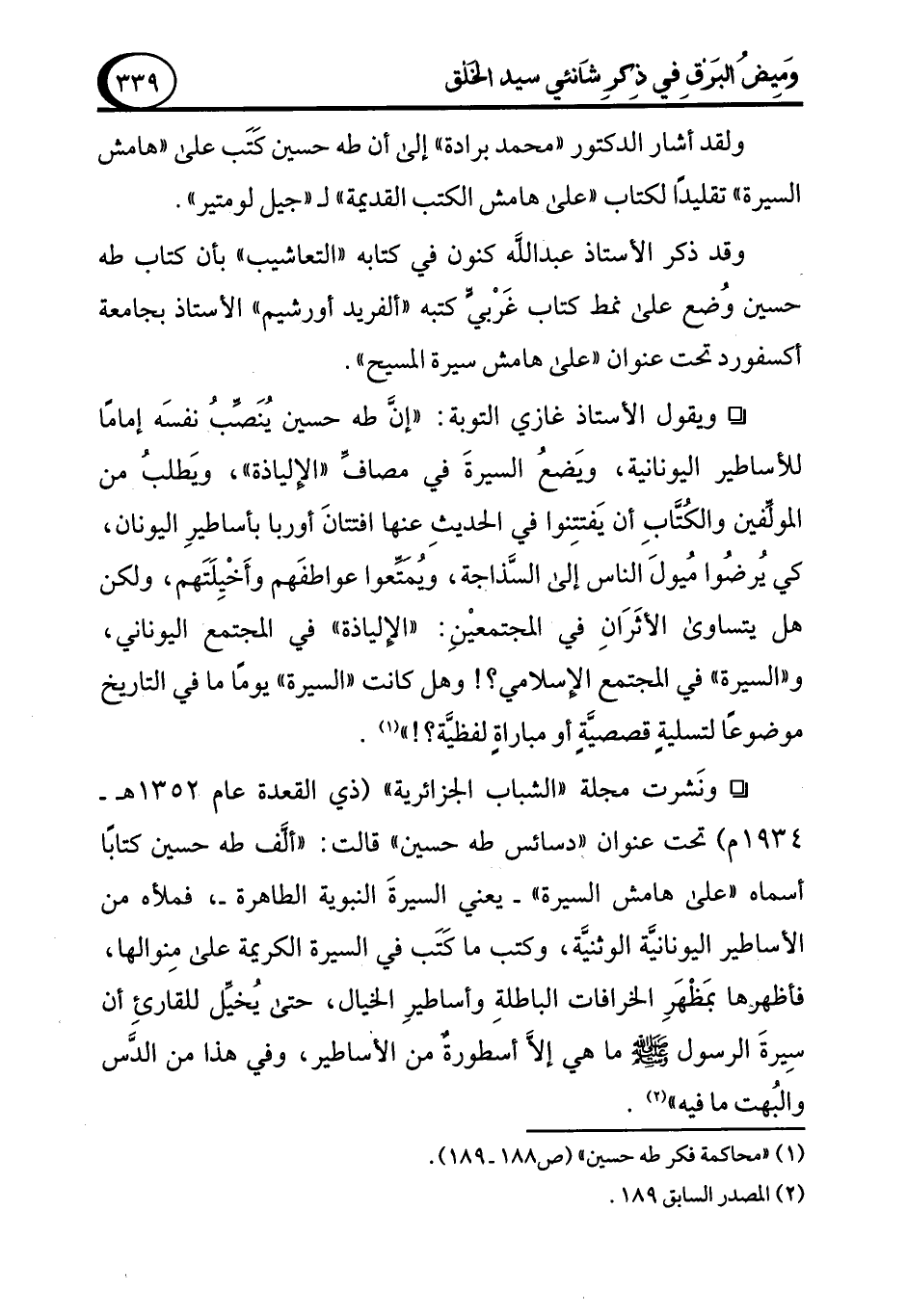 (¬1) "محاكمة فكر طه حسين" (ص 188 - 189).