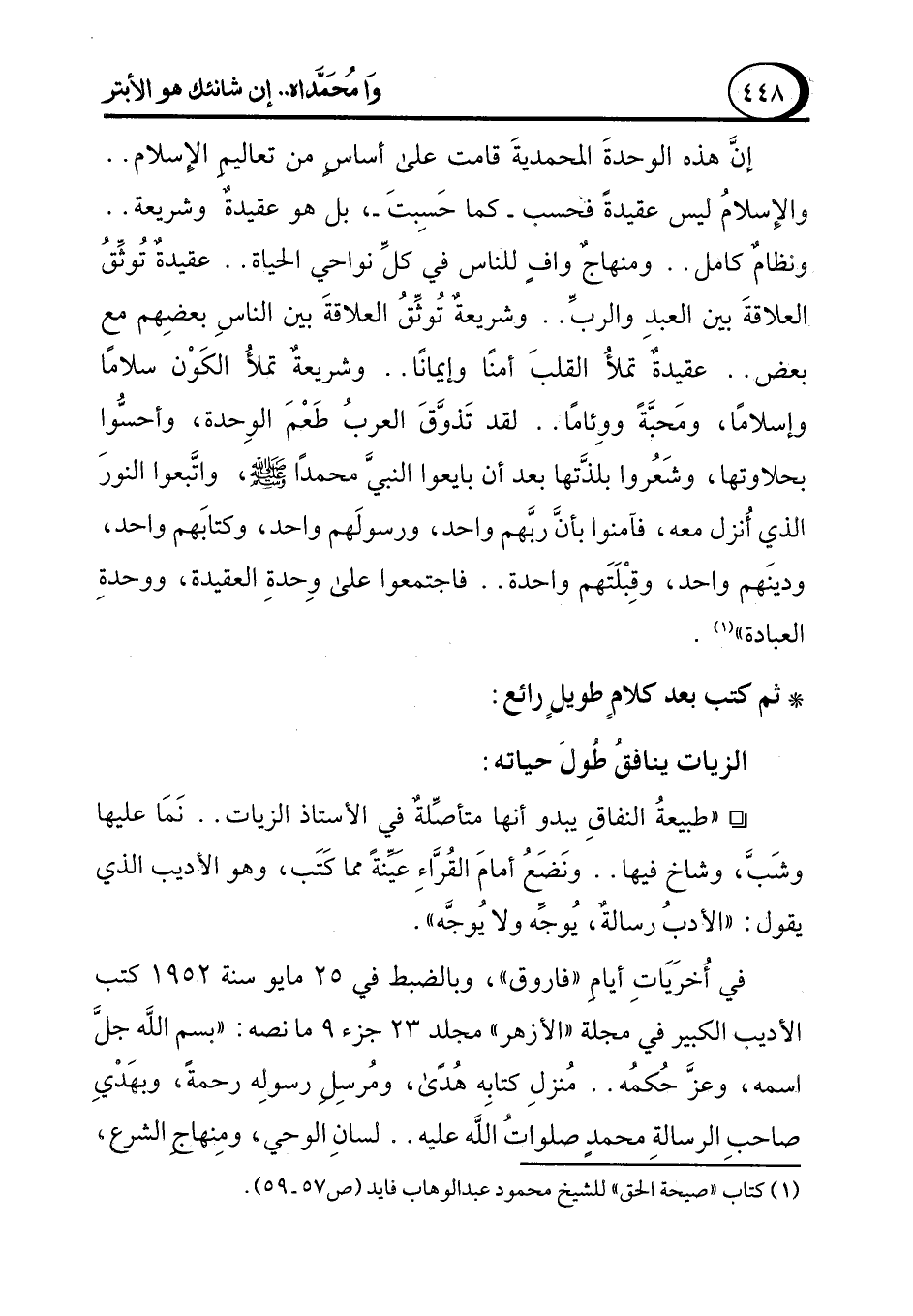 (¬1) كتاب "صيحة الحق" للشيخ محمود عبد الوهاب فايد (ص 57 - 59).