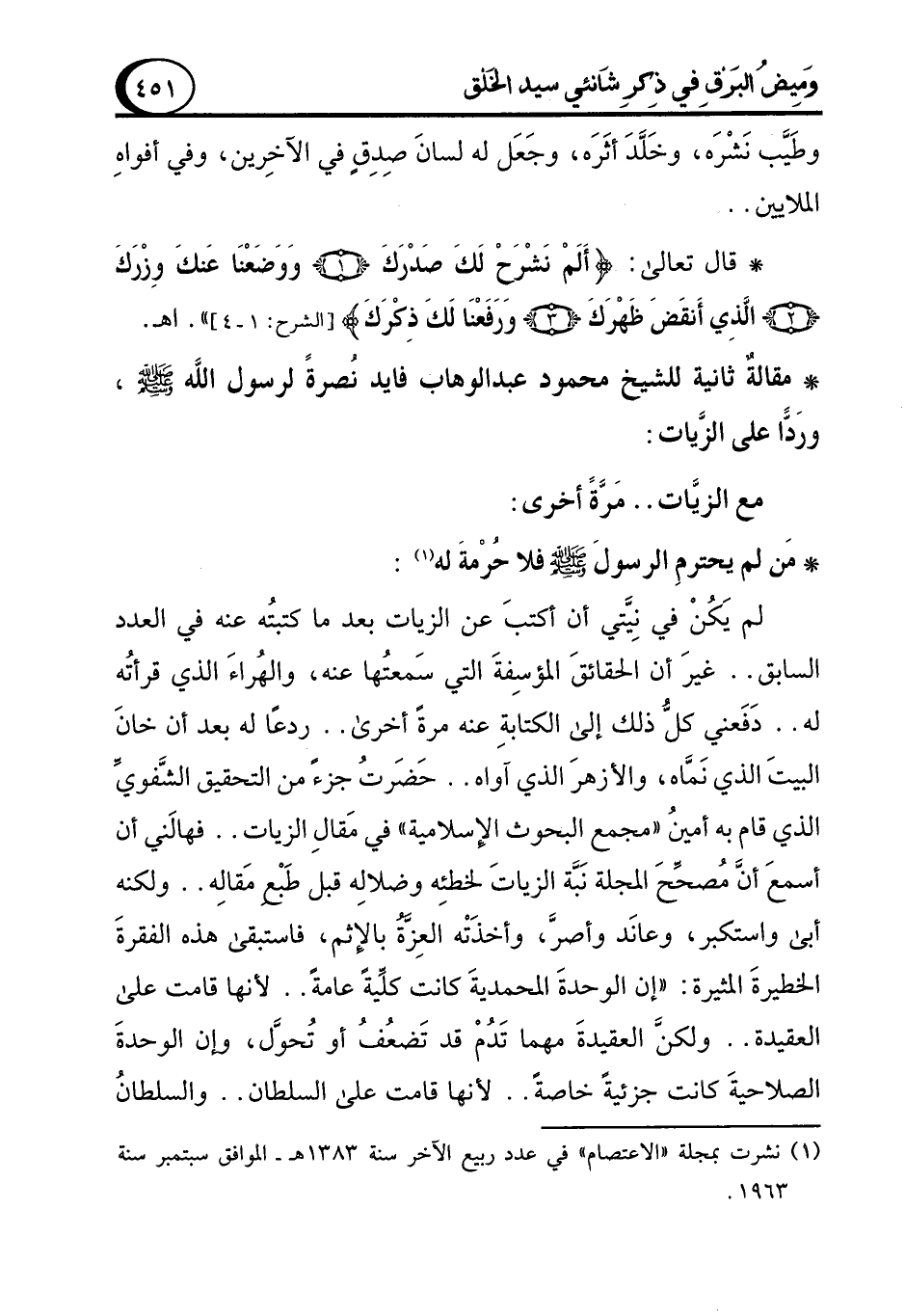 * مقالةٌ ثانية للشيخ محمود عبد الوهاب فايد نُصرةً لرسول الله - صلى الله عليه وسلم -، ورَدًّا على الزَّيات: