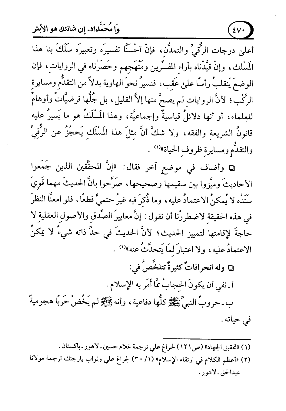 (¬2) "أعظم الكلام في ارتقاء الإِسلام" (1/ 30) لجراغ علي ونواب يارجنك ترجمة مولانا عبد الحق - لاهور.