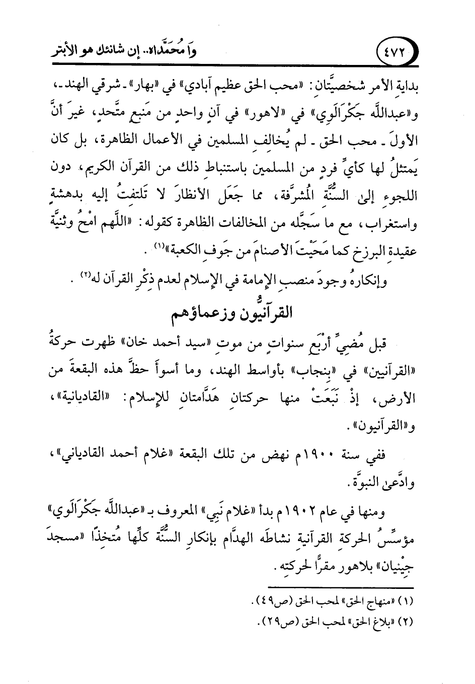 (¬2) "بلاغ الحق" لمحب الحق (ص 29).