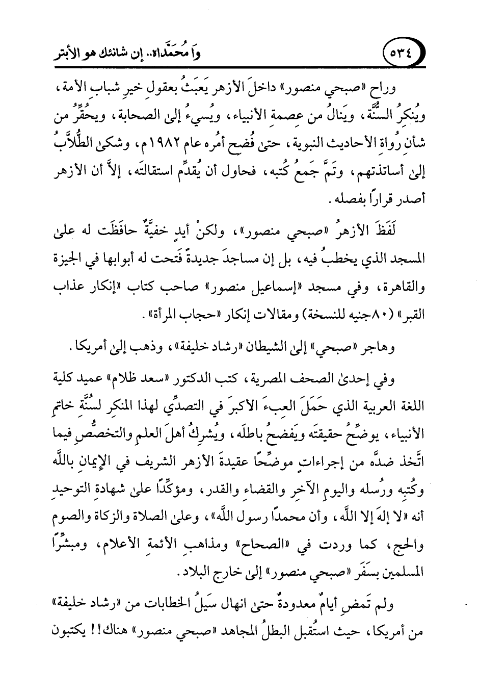 وهاجر "صبحي" إلى الشيطان "رشاد خليفة"، وذهب إلى أمريكا.