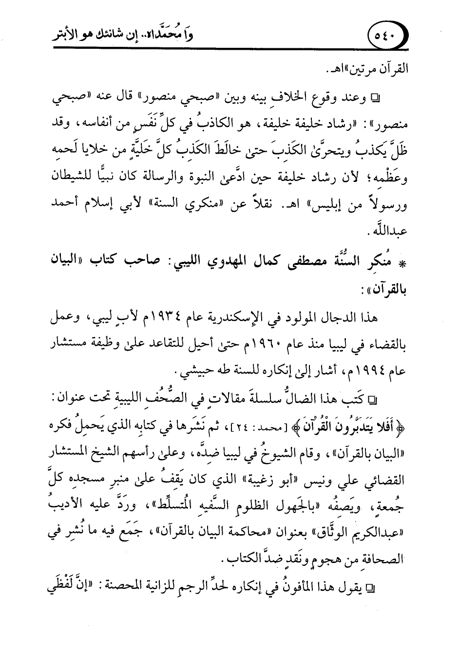 ° مُنكِر السُّنَّة مصطفى كمال المهدوي الليبي: صاحب كتاب "البيان بالقرآن":