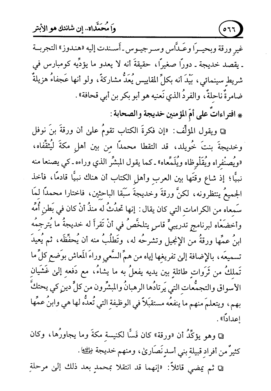 * افتراءاتٌ على أمِّ المؤمنين خديجة والصحابة: