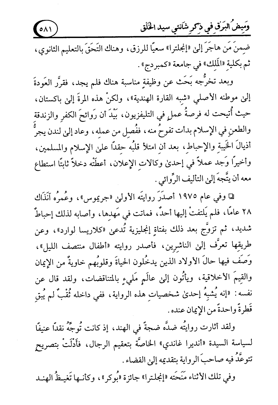 ولقد أثارت روايتُه ضدَّه ضجةً في الهند، إذ كانت تُوجِّهُ نقدًا عنيفًا لسياسة السيدة "أنديرا غاندي" الخاصَّة بتعقيم الرجال، فأَدْلَتْ بتصريحٍ تتوعَّدُ فيه صاحبَ الرواية بتقديمه إلى القضاء.