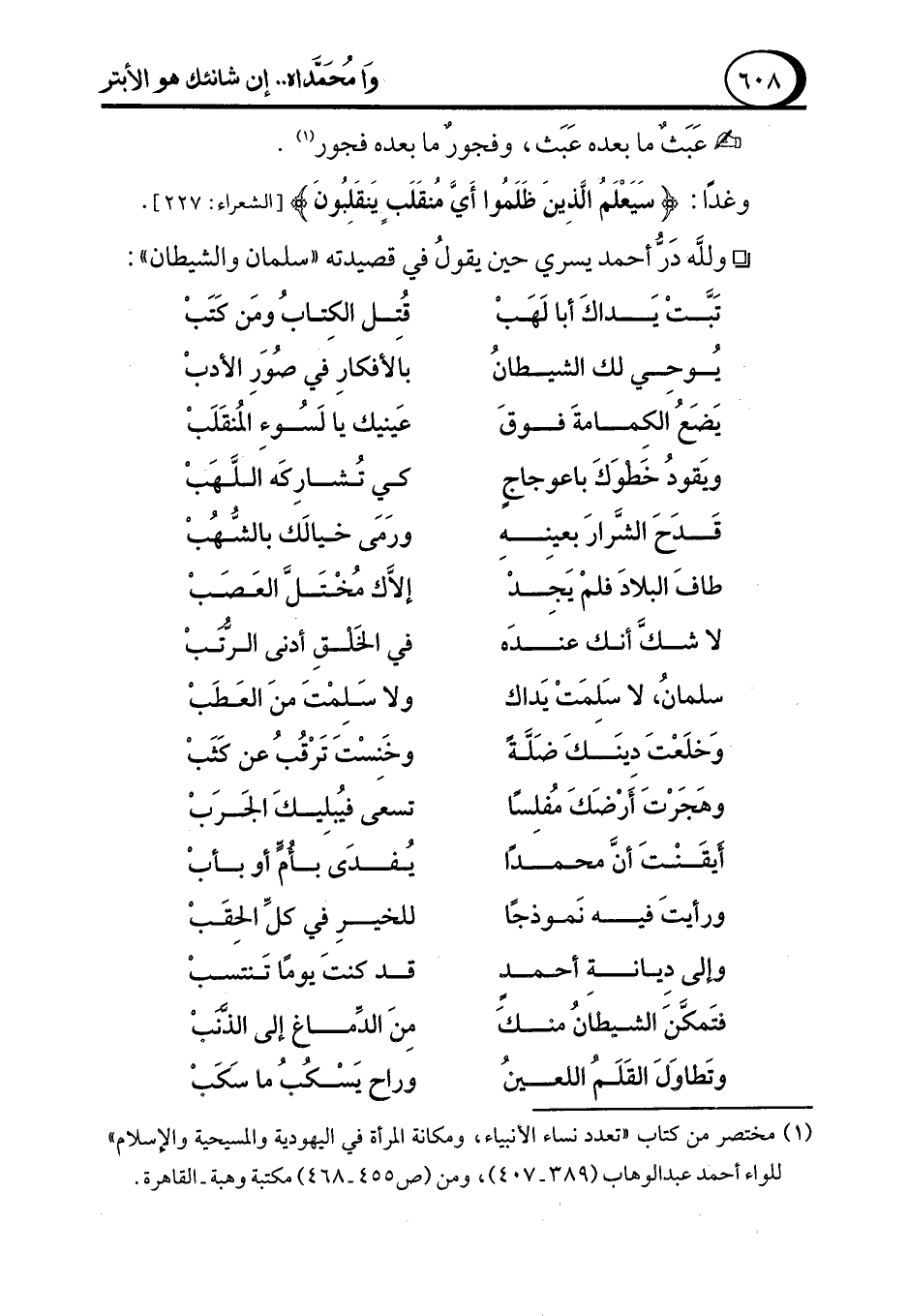 ° ولله دَرُّ أحمد يسري حين يقولُ في قصيدته "سلمان والشيطان":