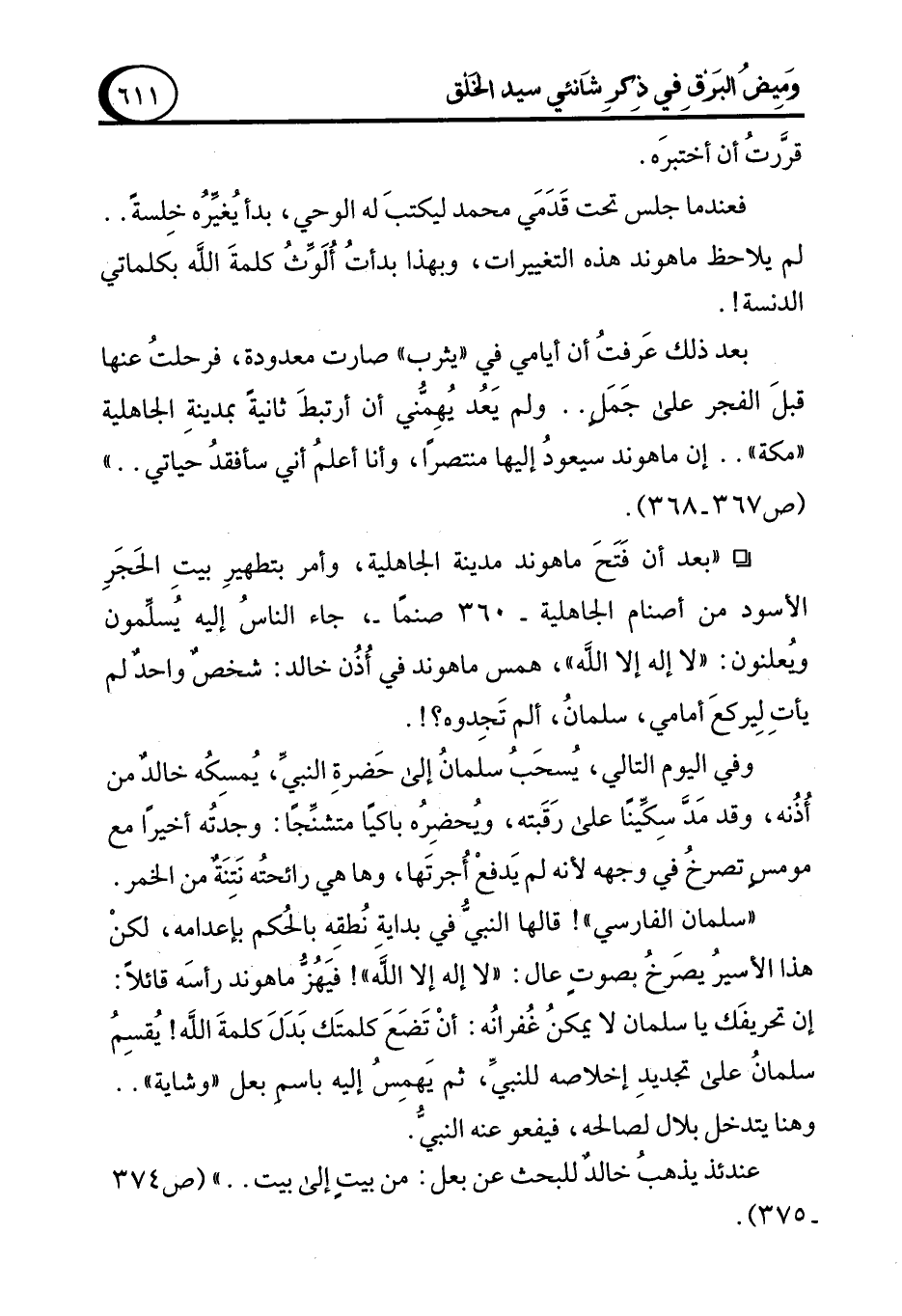 ° "بعد أن فَتَحَ ماهوند مدينة الجاهلية، وأمر بتطهيرِ بيتِ الحَجَرِ الأسود من أصنام الجاهلية -360 صنمًا-، جاء الناسُ إليه يُسلِّمون وُيعلنون: "لا إله إلا الله"، همس ماهوند في أُذُن خالد: شخصٌ واحدٌ لم يأتِ لِيركعَ أمامي، سلمانُ، ألم تَجِدوه؟!.