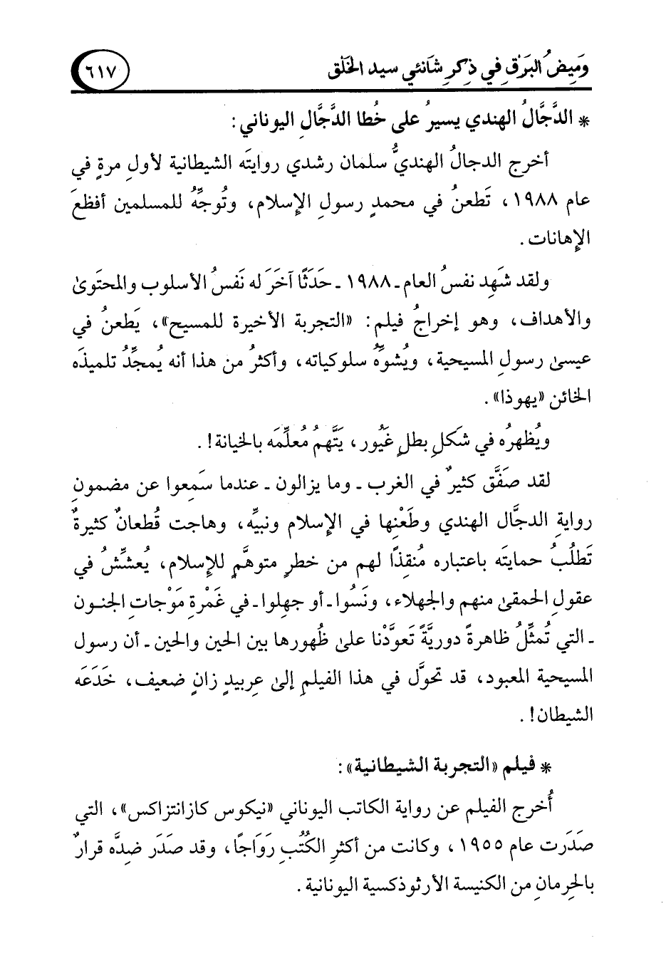لقد صَفَّق كثيرٌ في الغرب -وما يزالون- عندما سَمِعوا عن مضمونِ روايةِ الدجَّال الهندي وطَعْنِها في الإِسلام ونبيِّه، وهاجت قُطعانٌ كثيرةٌ تَطلُبُ حمايتَه باعتباره مُنقِذًا لهم من خطرٍ متوهِّمٍ للإِسلام، يُعشِّشُ في عقولِ الحمقى منهم والجهلاء، ونَسُوا -أو جهِلوا- في غَمْرةِ مَوْجاتِ الجنون -التي تُمثِّلُ ظاهرةً دوريَّةً تَعوَّدْنا على ظُهورها بين الحين والحين- أن رسول المسيحية المعبود، قد تحوَّل في هذا الفيلم إلى عِربيدٍ زانٍ ضعيف، خَدَعَه الشيطان!.