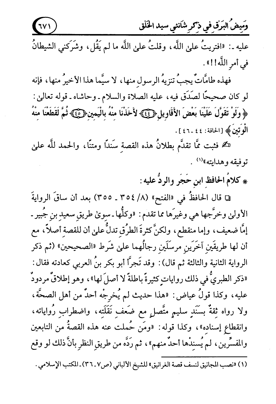 (¬1) "نصب المجانيق لنسف قصة الغرانيق" للشيخ الألباني (ص 7 - 36) - المكتب الإِسلامي.