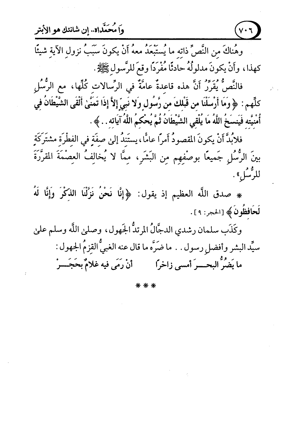وكَذَب سلمان رشدي الدجَّالُ المرتدُّ الجَهول، وصلى الله وسلم على سيِّد البشر وأفضلِ رسول .. ما ضَرَّه ما قال عنه الغبيُّ القِزمُ الجهول: