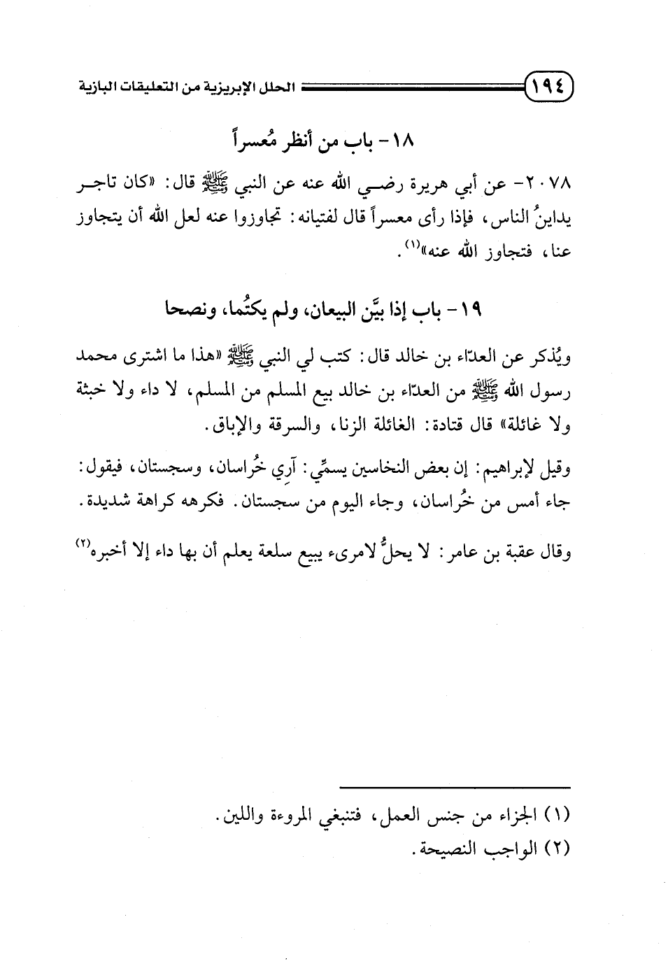 كتاب الحلل الإبريزية من التعليقات البازية على صحيح البخاري (اسم الجزء: 2)