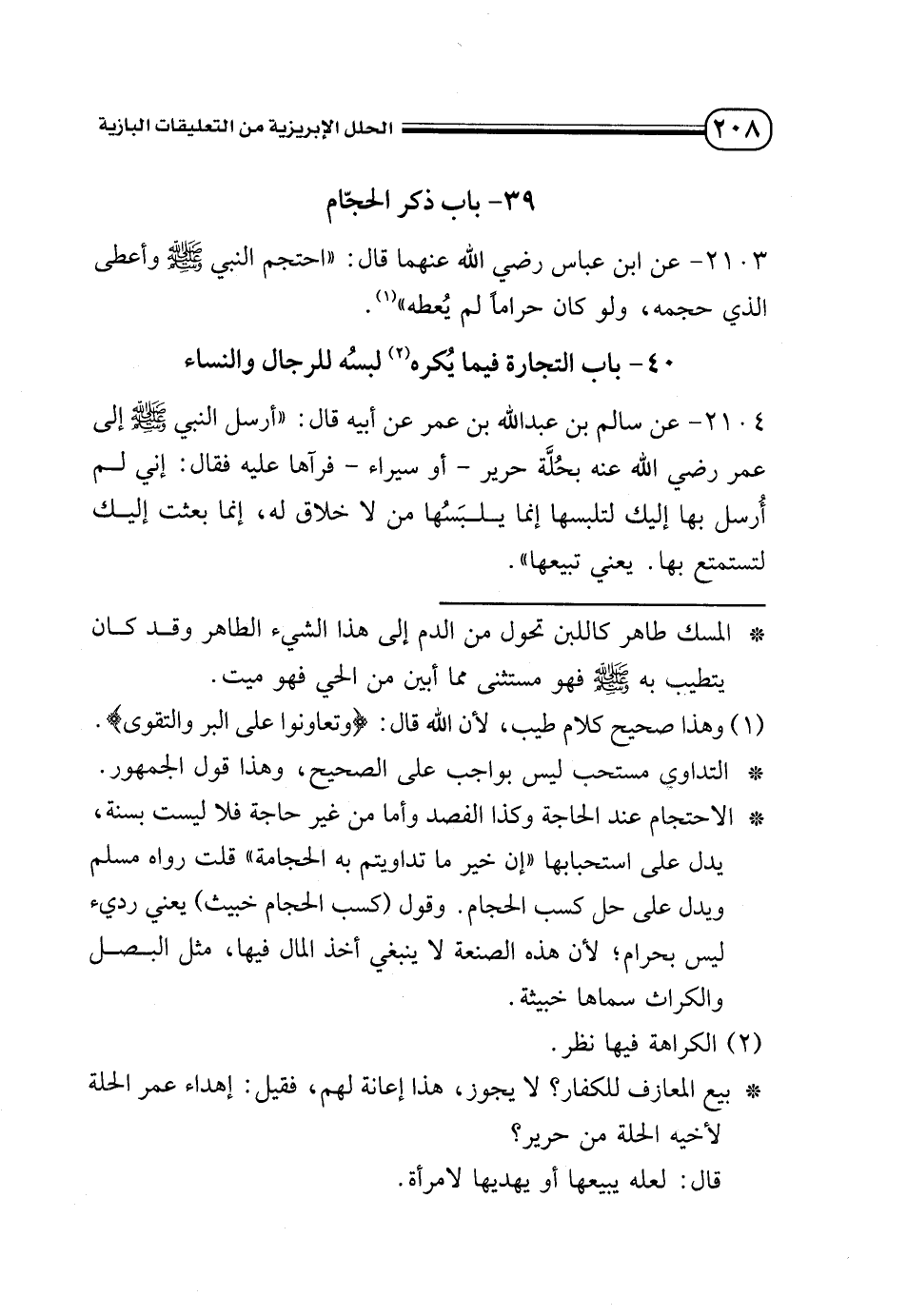 كتاب الحلل الإبريزية من التعليقات البازية على صحيح البخاري (اسم الجزء: 2)
