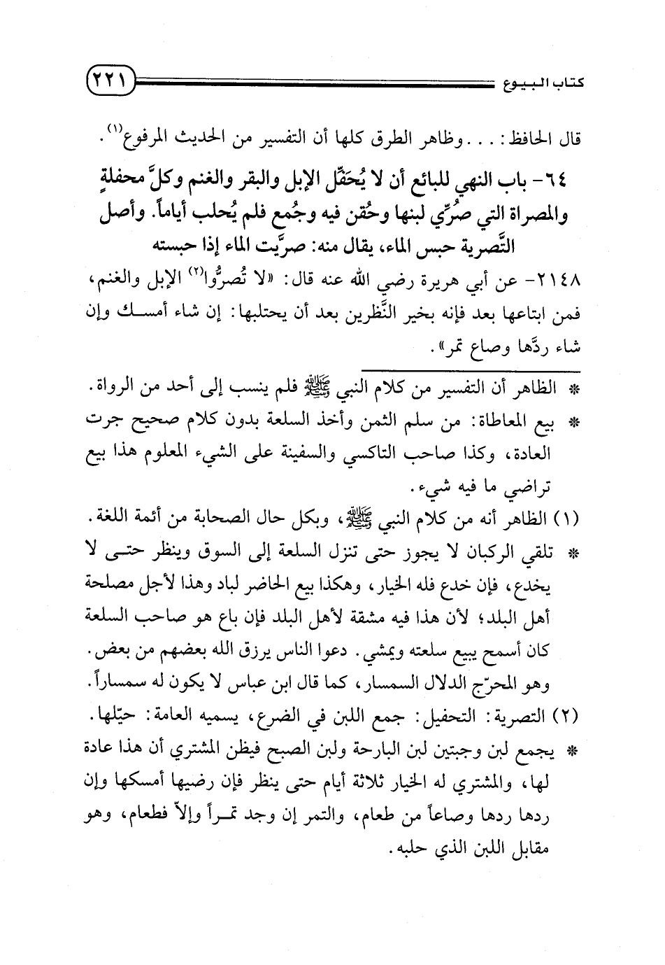2148 - عن أبي هريرة - رضي الله عنه - قال: «لا تصروا (¬2) الإبل والغنم، فمن ابتاعها بعد فإنه بخير النظرين بعد أن يحتلبها: إن شاء أمسك وإن شاء ردها وصاع تمر».