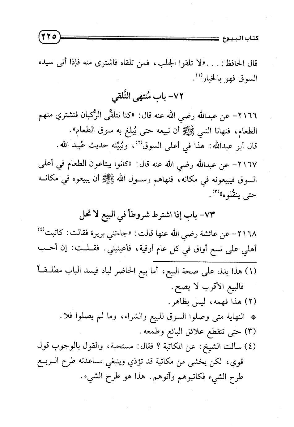 2167 - عن عبد الله - رضي الله عنه - قال: «كانوا يبتاعون الطعام في أعلى السوق فيبيعونه في مكانه، فنهاهم رسول الله - صلى الله عليه وسلم - أن يبيعوه في مكانه حتى ينقلوه» (¬3).