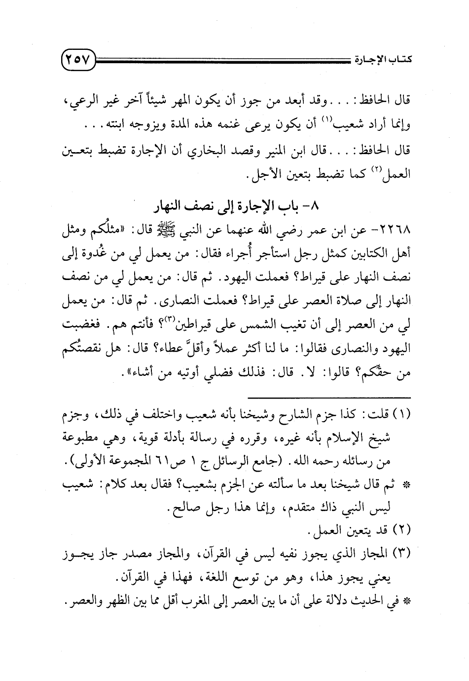 (¬1) قلت: كذا جزم الشارح وشيخنا بأنه شعيب واختلف في ذلك، وجزم شيخ الإسلام بأنه غيره، وقرره في رسالة بأدلة قوية، وهي مطبوعة من رسائله - رحمه الله -. (جامع الرسائل ج 1 ص 61 المجموعة الأولى).