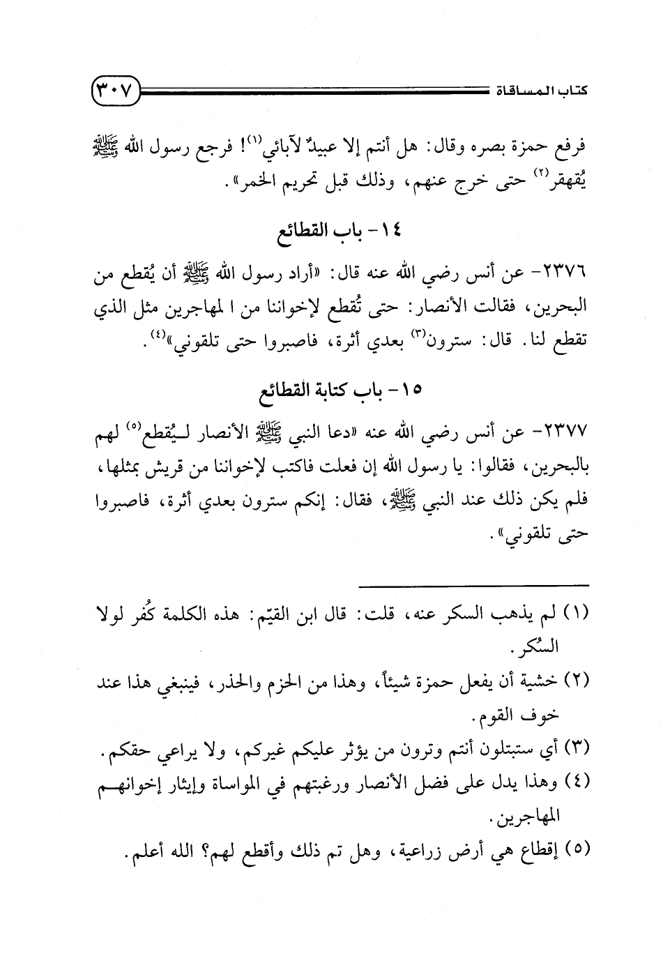2376 - عن أنس - رضي الله عنه - قال: أراد رسول الله - صلى الله عليه وسلم - أن يقطع من البحرين، قالت الأنصار: حتى تُقطع لإخواننا من المهاجرين مثل الذي تقطع لنا. قال: «سترون (¬3) بعدي أثرة، فاصبروا حتى تلقوني» (¬4).