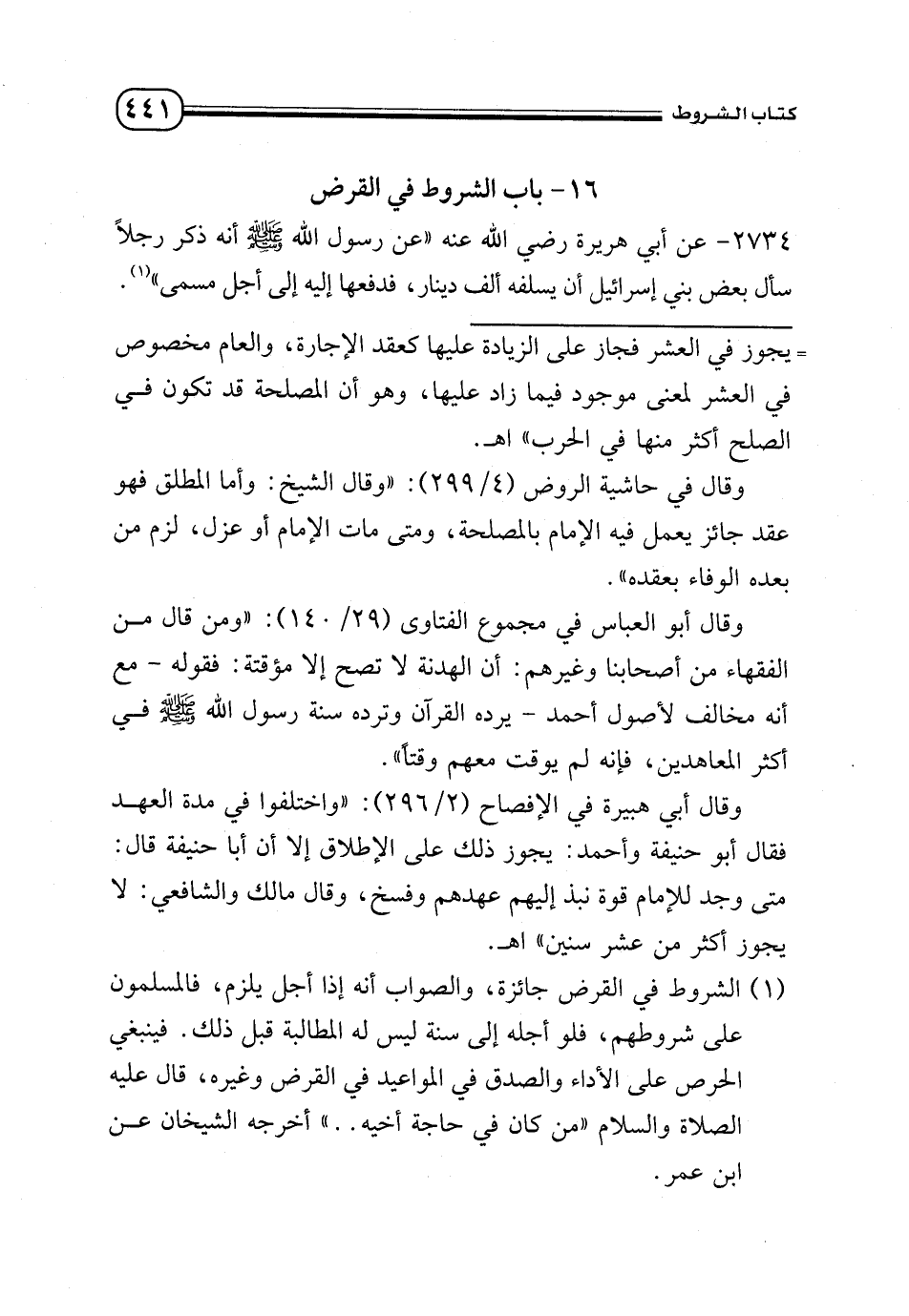 2734 - عن أبي هريرة - رضي الله عنه - «عن رسول الله - صلى الله عليه وسلم - أنه ذكر رجلًا سأل بعض بني إسرائيل أن يسلفه ألف دينار، فدفعها إليه إلى أجل مسمى» (¬1).