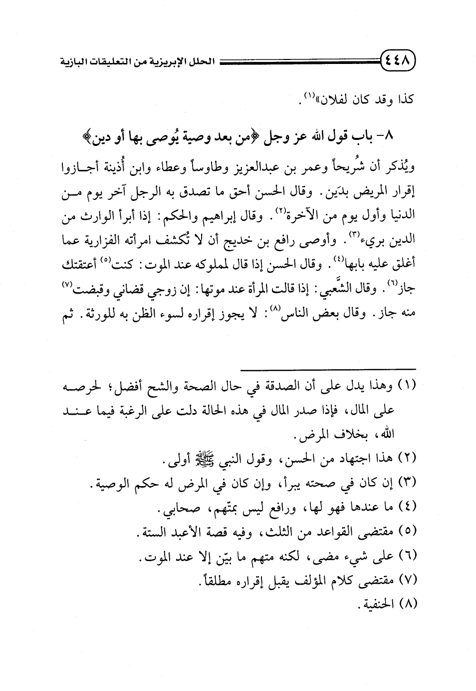 8 - باب قول الله - عز وجل - {مِنْ بَعْدِ وَصِيَّةٍ يُوصِي بِهَا أَوْ دَيْنٍ}