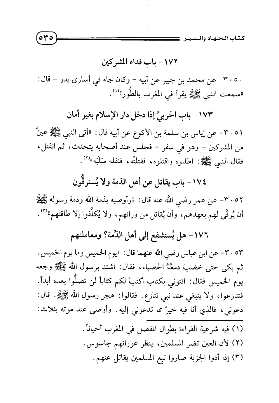 3050 - عن محمد بن جبير عن أبيه - وكان جاء في أسارى بدر- قال: «سمعت النبي - صلى الله عليه وسلم - يقرأ في المغرب بالطُّور» (¬1).