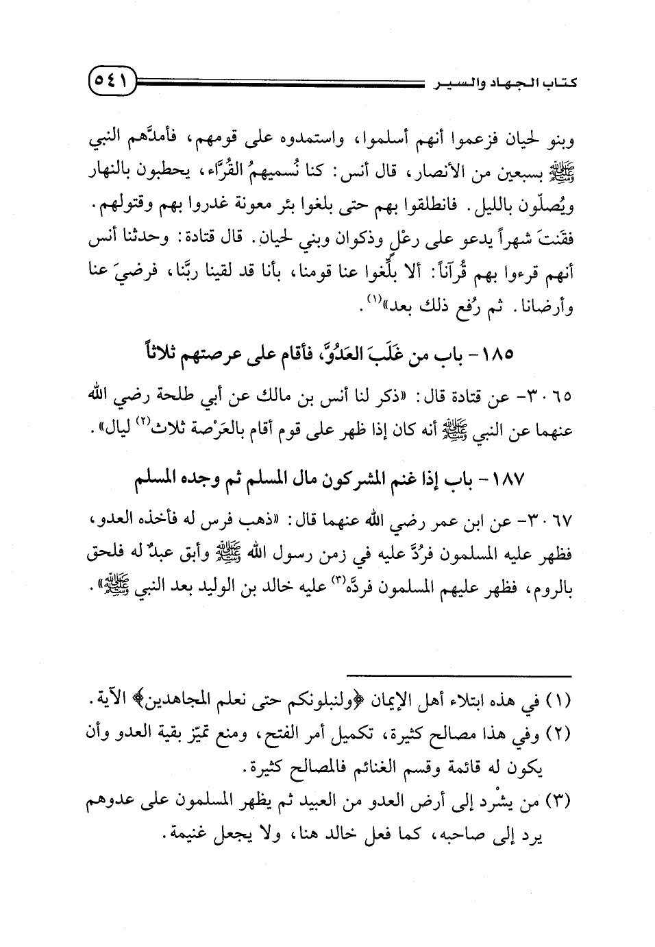 3067 - عن ابن عمر - رضي الله عنهما - قال: «ذهب فرس له فأخذه العدو، فظهر عليه المسلمون فرُدَّ عليه في زمن رسول الله - صلى الله عليه وسلم - وأبق عبدٌ له فلحق بالروم، فظهر عليهم المسلمون فردَّه (¬3) عليه خالد بن الوليد بعد النبي - صلى الله عليه وسلم -».