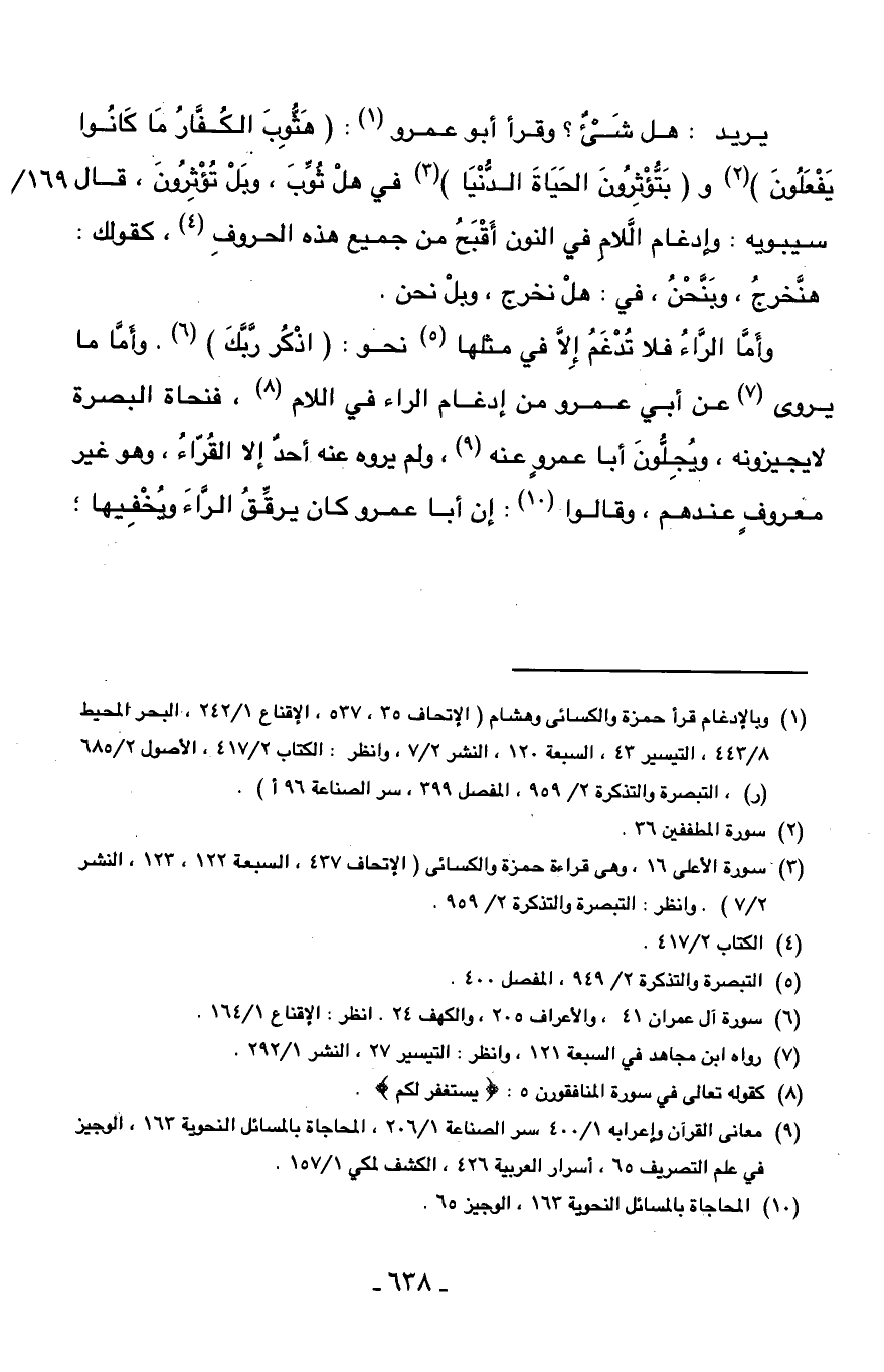 (¬1) وبالإدغام قرأ حمزة والكسائى وهشام (الإتحاف 35، 537، الإقناع 1/ 242، البحر المحيط 8/ 443، التسير 43، السبعة 120، النشر 2/ 7، وانظر: الكتاب 2/ 417، الأصول 2/ 685 (ر)، التبصرة والتذكرة 2/ 959، المفصل 399، سر الصناعة 96 أ).